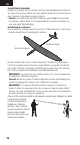 FR Test de portée Avant chaque session de vol, et notamment avec un nouveau modèle, il est important de vérifier la portée. Tous les émetteurs d’appareils Spektrum comprennent un système de test de portée qui réduit la puissance de sortie pour permettre de vérifier la portée. 1. Avec le modèle au sol, tenez-vous à 30 mètres (100 pieds) du modèle. 2. Faites face au modèle avec l’émetteur dans votre position de vol normale et placez votre émetteur en mode de vérification de la portée. 3.
