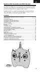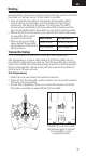 EN Installing the Transmitter Batteries 1. Remove the battery cover from the bottom of the transmitter. 2. Install four AA batteries as shown. 3. Install the battery cover. CAUTION: NEVER remove the transmitter batteries while the model is powered on. Loss of model control, damage or injury may occur. CAUTION: If using rechargeable batteries, charge only rechargeable batteries. Charging non-rechargeable batteries may cause the batteries to burst, resulting in injury to persons and/or damage to property.