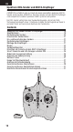 DE * Umgekehrtgas warnung: Der Sender gibt einen Warnton aus und zeigt blinkende LEDs an, wenn die Gas umgekehrt werden, nachdem der Sender aus- und wieder eingeschaltet wurde. Sie müssen die Taste Binden /Schalter A gedrückt, um die Umgekehrtgas warnung zu akzeptieren und zu entfernen. Werksreset: Schalten Sie den Sender ein, während Sie die Bedienelemente nach unten und außen halten. Der Sender gibt eine Reihe von Signaltönen aus und kehrt zu den Werkseinstellungen zurück.