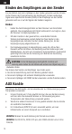 DE Binden des Empfängers an den Sender Für den Betrieb muß der Empfänger an den Sender gebunden werden. Binden ist der Prozess der Programmierung des Empfängers mit dem eindeutigen Signal eines spezifischen Senders (GUID) ist der Empfänger an den Sender gebunden wird nur er auf die Signale des Senders reagieren. Binden 1. Halten Sie den Bindungsschalter auf dem Receiver zum Einschalten gedrückt. Die orangefarbene LED blinkt kontinuierlich und zeigt an, dass der Receiver im Kopplungsmodus ist. 2.