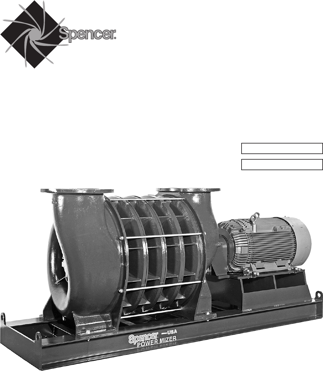 Spencer Power Mizer Multistage Centrifugal Cast Blowers ® ® Operating and Maintenance Manual Serial No. Model No. Important Read and become familiar with this manual prior to installing your Spencer blower. Following the instructions detailed here will help you realize its full potential of efficient service and extended lifespan. Damage resulting from failure to follow correct procedure will void the warranty. Form WW6.