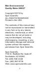 Mini Environmental Quality Meter 850027 Copyright ©2012 by Sper Scientific ALL RIGHTS RESERVED Printed in the USA The contents of this manual may not be reproduced or transmitted in any form or by any means electronic, mechanical, or other means that do not yet exist or may be developed, including photocopying, recording, or any information storage and retrieval system without the express permission from Sper Scientific. Sper Scientific 7720 E. Redfield Rd.