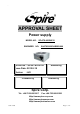 - APPROVAL SHEET Power supply MODEL NO: ENGINEER SP-ATX-420W-E12 NO: SUATX0180Z0AB0EU009 Audited by Article No. : SP-AP-SU-A158 Issue Date :2012-9-18 Version : A/0 Checked by Drafted by Spire Corp. Tel.: +86-755-26801567 Fax: +86-755-26801563 Http://www.spire-corp.com Http://www.spirepower.com Http://www.spirecoolers.