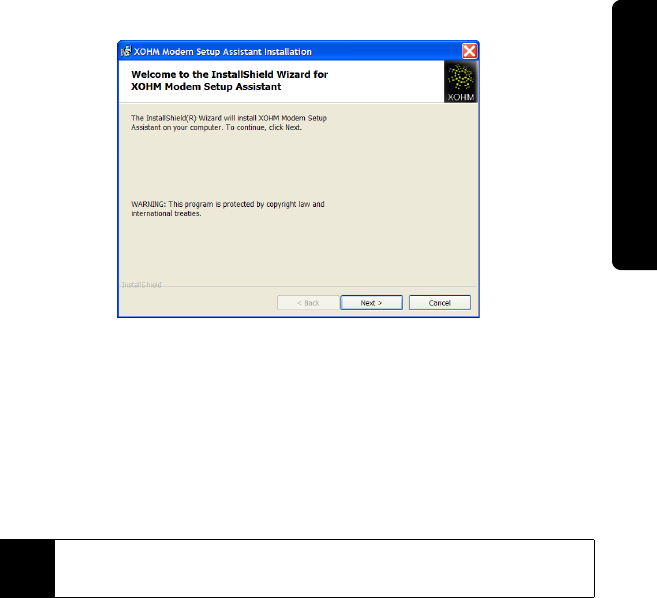 2. From the XOHM Modem Setup Assistant Welcome screen, click Next.