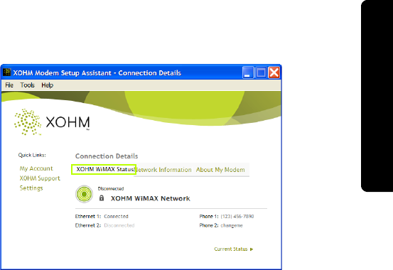 䡲 Click XOHM WiMAX Status (see above) to display your current XOHM status,