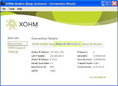 - Your XOHM Modem Settings