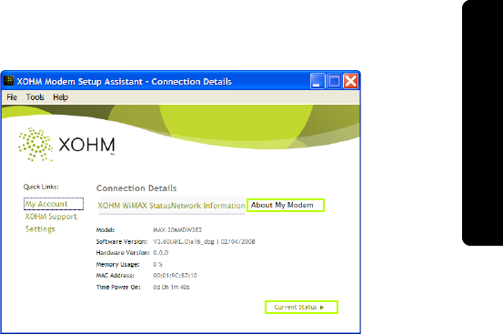 䡲 Click About My Modem (see below) to display information about your XOHM
