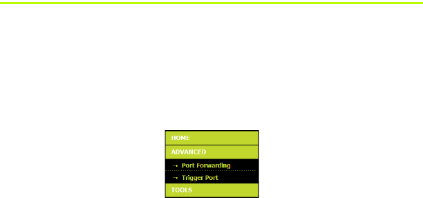 2. Click Port Forwarding or Trigger Port to display the corresponding menu.