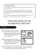 Polarized Plug This appliance has a polarized plug (one blade is wider than the other); follow the instructions below: To reduce the risk of electric shock, this plug is intended to fit into a polarized outlet only one way If the plug does not fit fully into the outlet, reverse the plug. If it still does not fit, contact a qualified electrician. Do not attempt to modify the plug in any way.