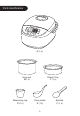 Parts Identification A (1 x) Inner pot B(1 x) Measuring cup D (1 x) Steam Tray C (1 x) Soup Ladle E (1 x) 5 Spatula F (1 x)