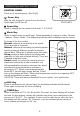 Safety Touch Stop Sensor This feature is designed to protect children. Fan will stop with a touch on the fan guard. This is a protection feature and not a malfunction. REMOTE CONTROL Keys on the remote control: Power ( ), Wind Speed ( ), Wind Mode ( ), OSC ( ) and Timer ( ) have the same functions as corresponding keys on the unit. (Fig. 9) 1. Remote Control Operation • Point the remote control at the control panel and press the desired key.
