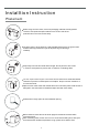 In s t al l t i o n I n s t r u c t i o n Pl ac em en t Before using the wine cooler, remove all packaging materials including bottom cushions, foam pads and tapes inside the wine cooler. Tear off the protective lm on the door and the body. The wine cooler is to be placed in a well-ventilated indoor place; the ground shall be at and sturdy (rotate left or right to adjust the legs for leveling if unstable). Keep away from heat and avoid direct sunlight.