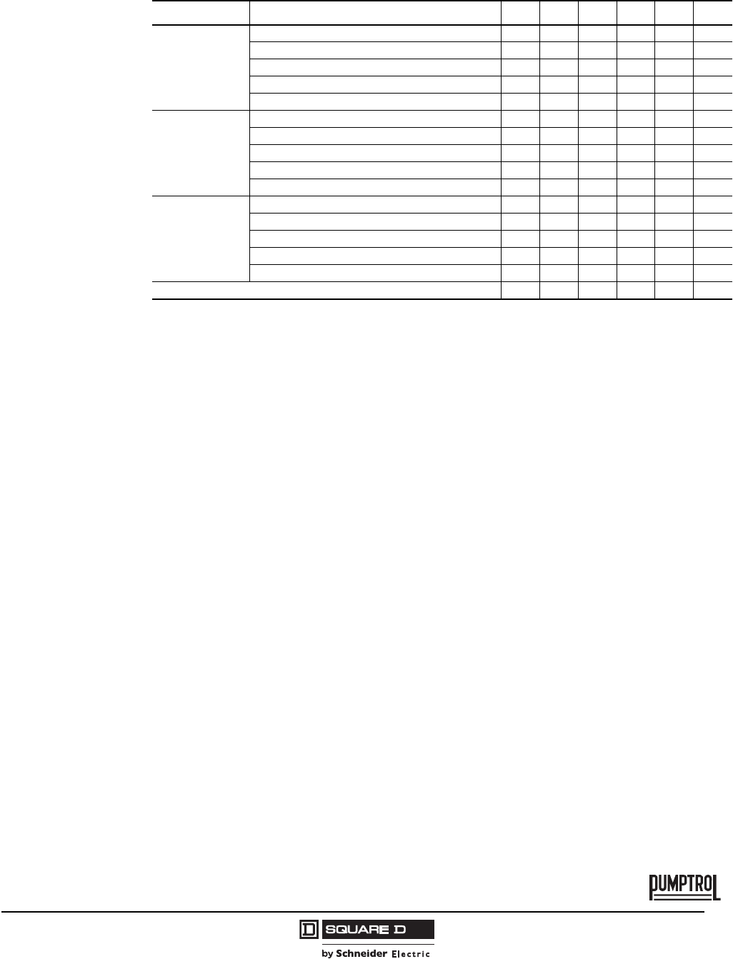 Table 7: Bulk Package Form Numbers for 9013F Pressure Switches
