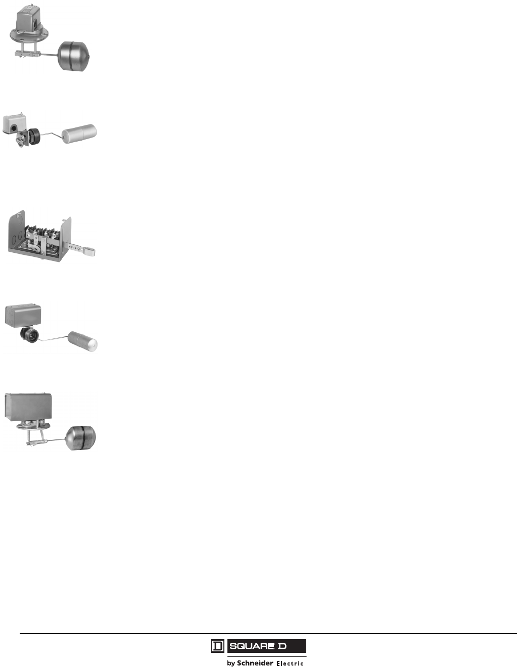 The Class 9037 Type E switches are flange mounted. Float movement is transmitted through a quad