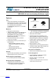 STM32H750VB STM32H750IB STM32H750XB Electrical characteristics Table 95. OPAMP characteristics(1) (continued) Symbol en IDDA(OPAMP) Parameter Voltage noise density OPAMP consumption from VDDA Conditions at 1 KHz at 10 KHz Normal mode Highspeed mode output loaded with 4 kΩ no Load, quiescent mode, follower Min Typ Max - 140 - - 55 - - 570 1000 Unit nV/√ Hz µA - 610 1200 1. Guaranteed by design, unless otherwise specified. 2.
