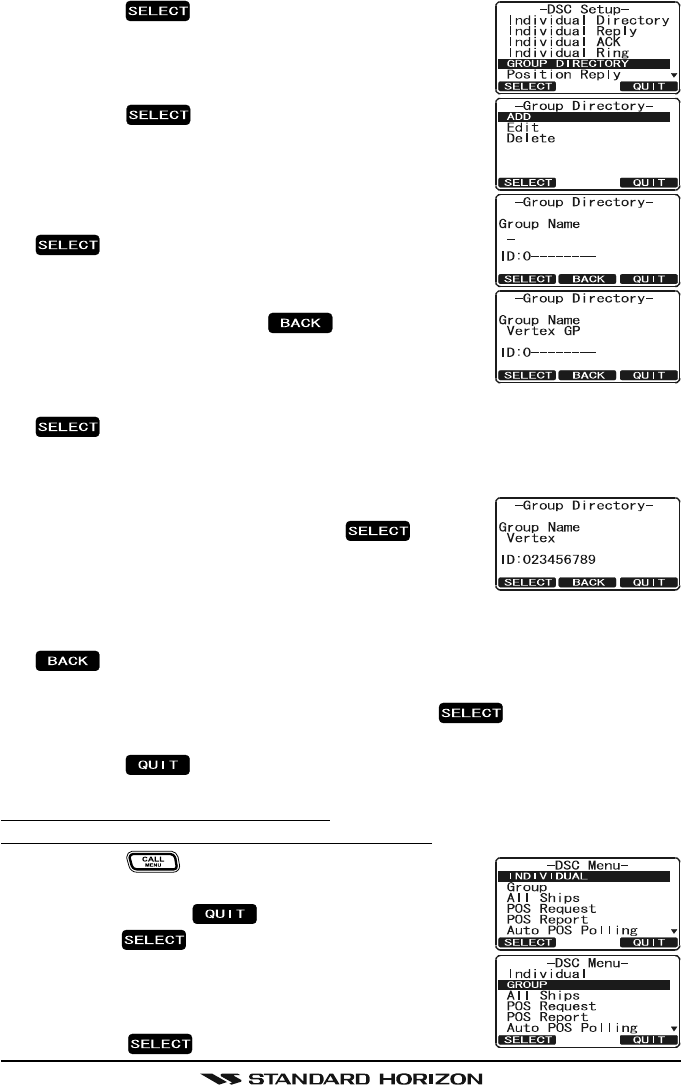 soft key to advance to the GROUP MMSI (Maritime Mobile Service