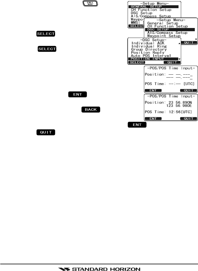 After the position is entered, transmitting a DSC Distress, Position Request, or