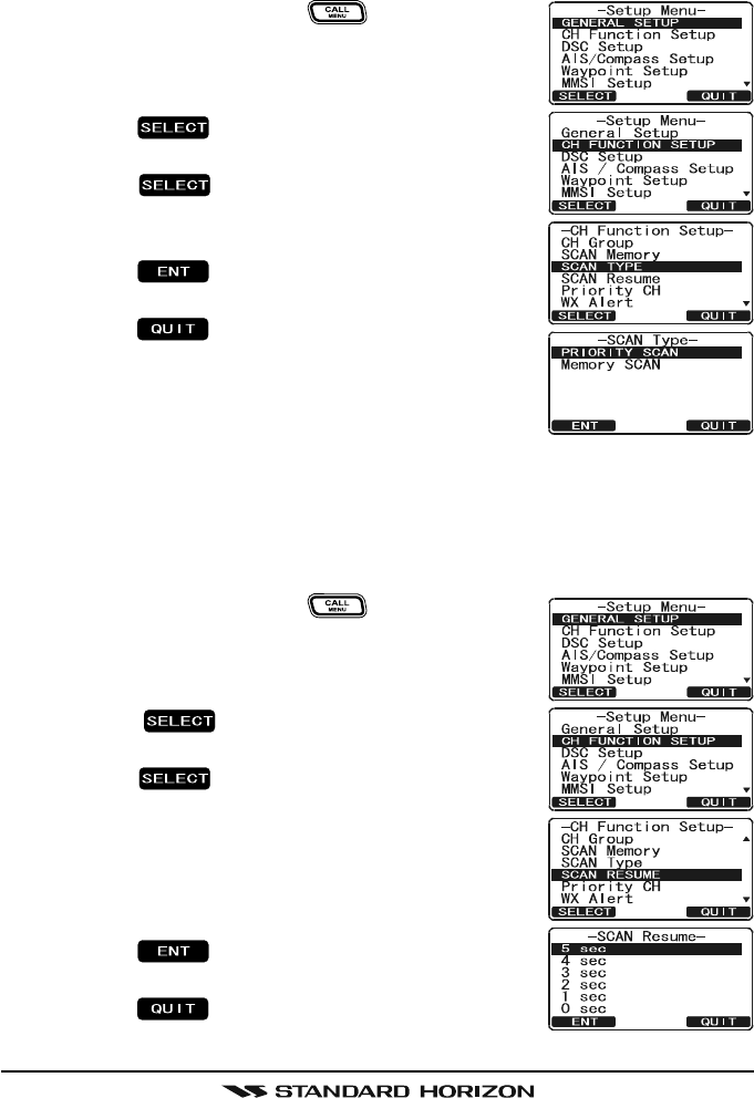 5. Rotate the CHANNEL knob to select “PRIORITY