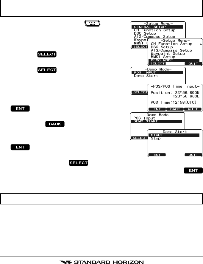 This mode is used by Standard Horizon sales persons and dealers to demon-