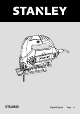 ENGLISH (Original instructions) Technical Data SPECIFICATIONS STSJ0600 Power 600W Voltage 220-240V Frequency 50/60Hz Speed Pendulum action Bevel cut Modes Cutting capacity 800 - 3000 /min 4 Stages 0-45º 3 Steel 5mm Aluminio 15mm Wood 85mm Stroke length 20mm Cord 2m DO NOT RETURN THIS PRODUCT TO THE STORE, first contact your local STANLEY Office or nearest authorized service center. b.