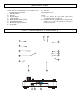 T.60 TURNTABLE CONTENTS 1) 2) 3) 4) 5) 6) 7) 8) 9) Start/Stop Button Strobe Dots Slip Mat Center Spindle Power Switch 33/45 Button Target Light Base Pitch Control Slider Headshell Locking Nut 10) 11) 12) 13) 14) 15) 16) 17) Tonearm Arm Rest Counterweight 45-rpm Adaptor Position For Preparing Cartridge Phono Output GND Power Cord Connector PLACEMENT • Do not place the unit in a location where it will be exposed to direct sunlight or near a heating appliance.