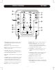 CONTROL OVERVIEW TOP PANEL 9. Headphone Input - Insert your ¼” headphone plugs here. 1. Channel Gain - Adjusts the pre-fader volume for cleaner sound. Reduce the channel gain if you notice the level indicators flashing red. 10. Fader Start On/Off Switch - When the unit has been connected to a CD player using a control cable, this becomes the On/Off switch to automatically start and stop the CD player while using the crossfader. 2. Mic Input Gain - Adjusts microphone input level. 3.