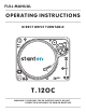 FULL MANUAL OPERATING INSTRUCTIONS DIRECT DRIVE TURNTABLE T.12OC WARNING: TO PREVENT FIRE OR ELECTRIC SHOCK, DO NOT EXPOSE THIS APPLIANCE TO RAIN OR MOISTURE.