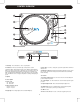 CONTROL OVERVIEW 1. Start/Stop - Press this button to start or stop the platter. 8. Pitch slider - Use this to change the speed of the platter when the PITCH indicator is lit. 2. Strobe dots - The dots around the edge of the platter are used in conjunction with the light located inside the motor ON/OFF switch. While the platter is in rotation, the dots help to indicate the speed of rotation. The speed is lower than the displayed speed (33,45,) when the dots are flowing to the right.