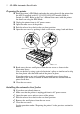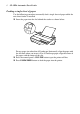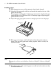Installing the automatic sheet feeder 3 ❏ arms enter into grooves in the printer mechanism that was exposed when you removed the two small pieces (see “Preparing the printer” in the previous section). The top of the automatic sheet feeder angled towards the front of the printer when you do this. Swing the back of the automatic sheet down, and press down gently until it settles securely in place. ❏ Close the mute cover. ❏ Insert the three hopper attachments on top of the hopper support as shown below.