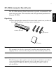 1 The SF-15HA Automatic Sheet Feeder makes it possible to automatically feed paper into your printer. This manual describes the operational procedures for using the SF-15HA. Unpacking ❏ After unpacking the contents of the carton, check to make sure you have all five items. If anything is missing, contact your dealer. Automatic sheet feeder Hopper attachment User’s Manual Note: The automatic sheet feeder is protected by packing material and tape during shipping.