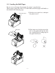 3-3. Loading the Roll Paper Be sure to use roll paper that matches the printer’s specification. When using a paper roll with an 57.5 mm width, install the paper roll holder as described on the following page. Cover open lever Roll paper 1) Push the cover open lever, and open the printer cover. 2) While observing the direction of the roll, set the paper roll into the hollow, and pull on the leading edge of the paper toward you.
