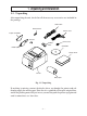 1. Unpacking and Installation 1-1. Unpacking After unpacking the unit, check that all the necessary accessories are included in the package. USB cable Switch blind Power cord Paper roll holder Screws Ferrite core Rubber foots CD-ROM Holder plate Setup sheet Printer Roll paper Fig. 1-1 Unpacking If anything is missing, contact the dealer where you bought the printer and ask them to supply the missing part.