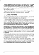 Whentextor graphicsare sentby the computerto the printer,laser beamis generatedby a semiconductorlaser diode.Thisbeam is focusedby special scanningmirrorsthatturnthelightbeamintoa toolthat“writes”or’’pnnts” on the surfaceof the drum.The areasof the drumtouchedby thelaserbeam lose their negativecharge and containa reverseimage of the information sentfrom the computer.As the drumrotates,it passesa developerunitthat is also rotating,but in the oppositedirection.
