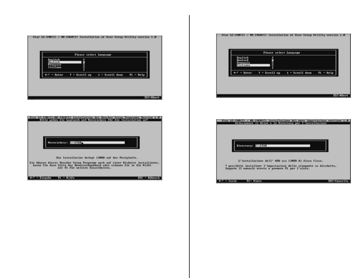 ❏ Wählen Sie die Sprache, die Sie benutzen möchten und drücken Sie Enter.