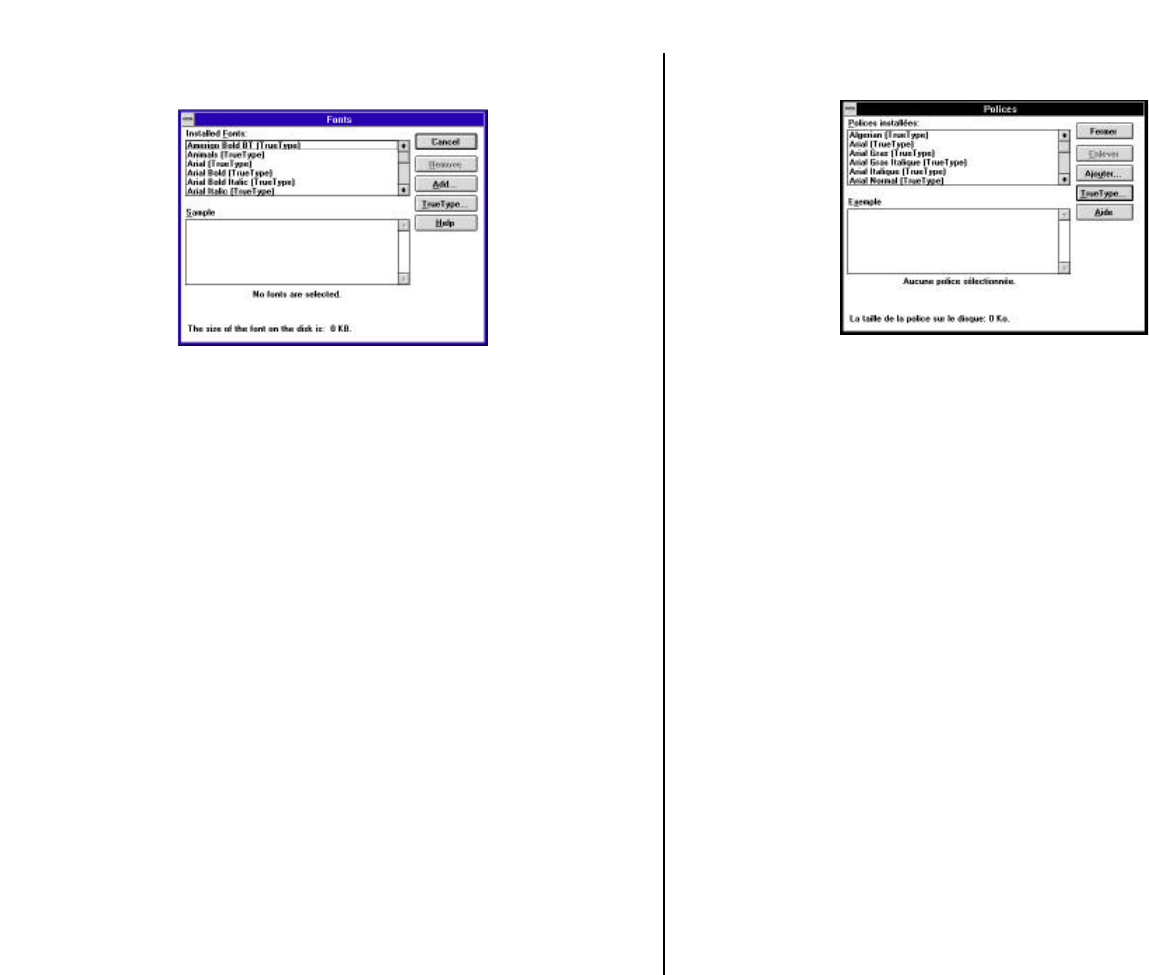 ❏ Cliquez sur OK. Le dialogue Polices apparaît et l’installation est effectuée
