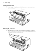 Feeding cut-sheet paper into the printer 37 Feeding cut-sheet paper into the printer Use the following procedure to feed cut sheet paper into the printer. When feeding large paper, such as A4-size paper, pull out the document table extension. ❏ Check that the control panel’s POWER indicator is flashing, which shows ❏ ❏ that there is no paper in the printer. When printing on 4-ply or 5-ply paper, the Multi-Part Mode should be used. Check to make sure that the control panel’s MULTI-PART indicator is lit.