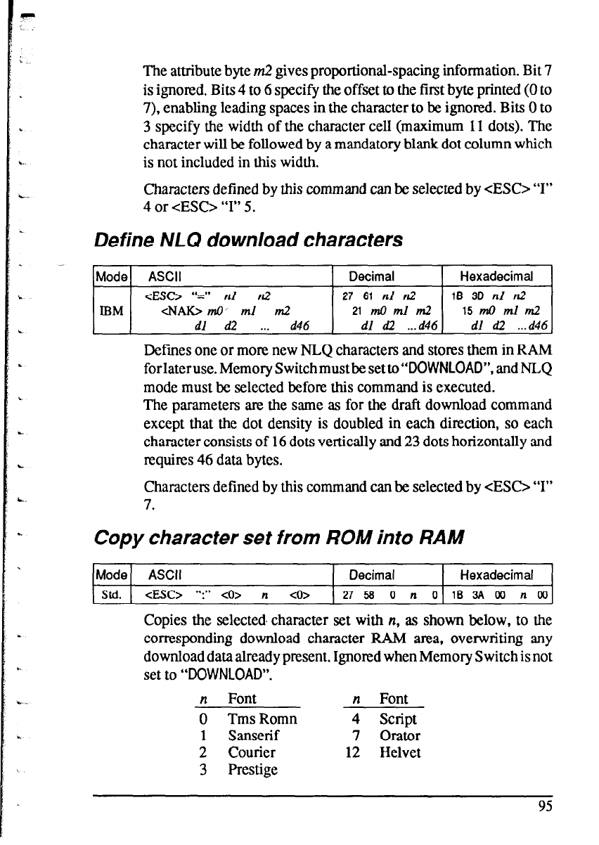 The attribute byte m2 gives proportional-spacing information. Bit 7