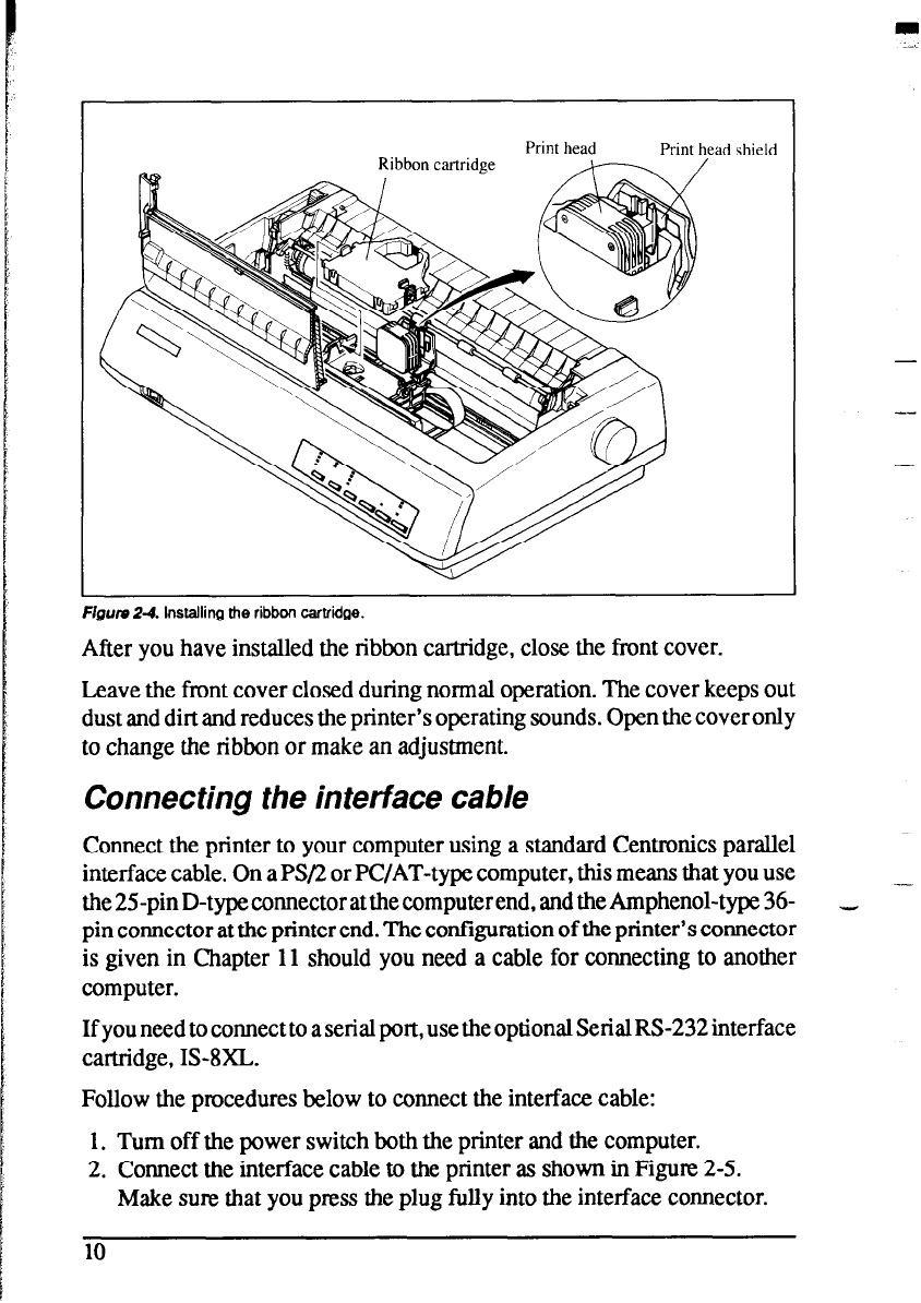 2. Connect the interface cable to the printer as shown in Figure 2-5.