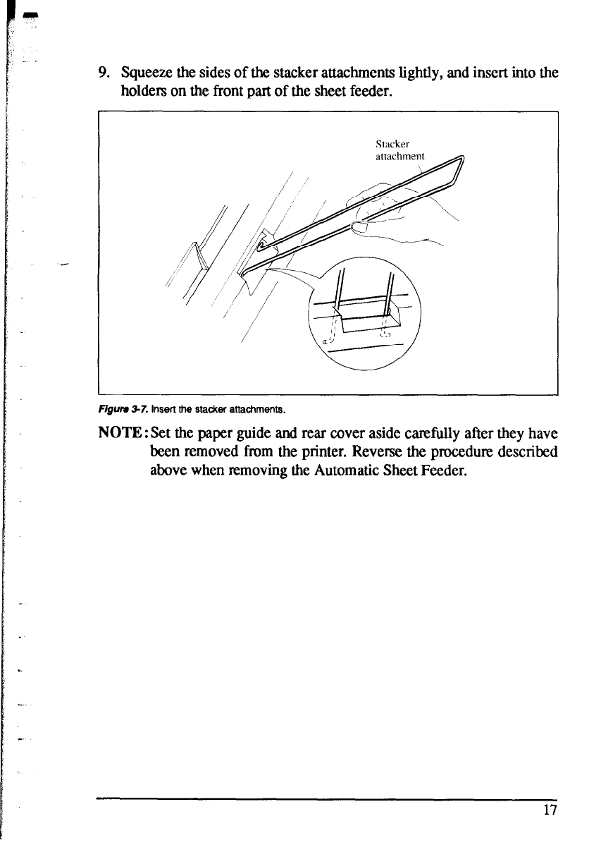Figum 3-7. insert the stacker attachments,