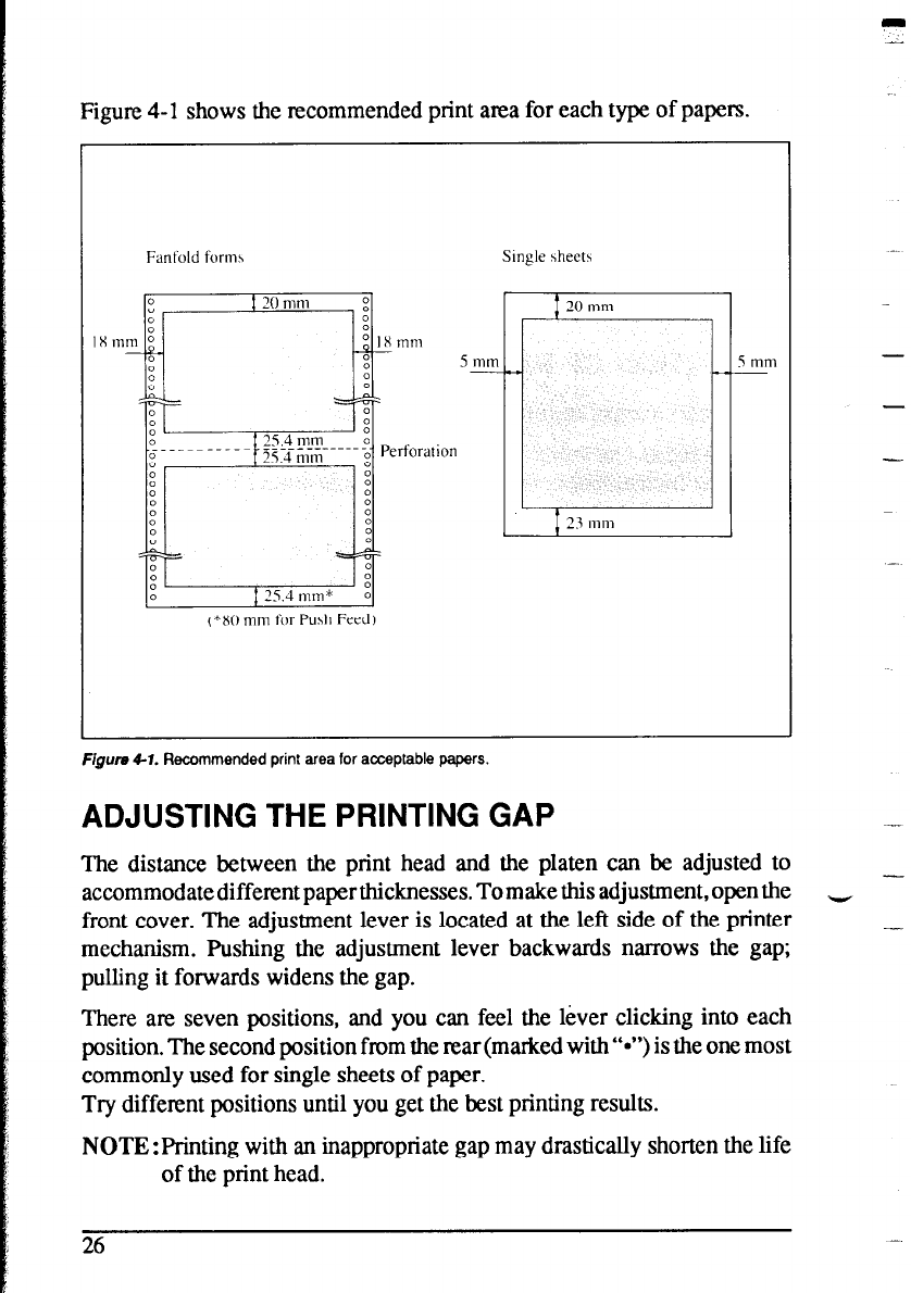 Figure 4-l shows the recommended print area for each type of papers.