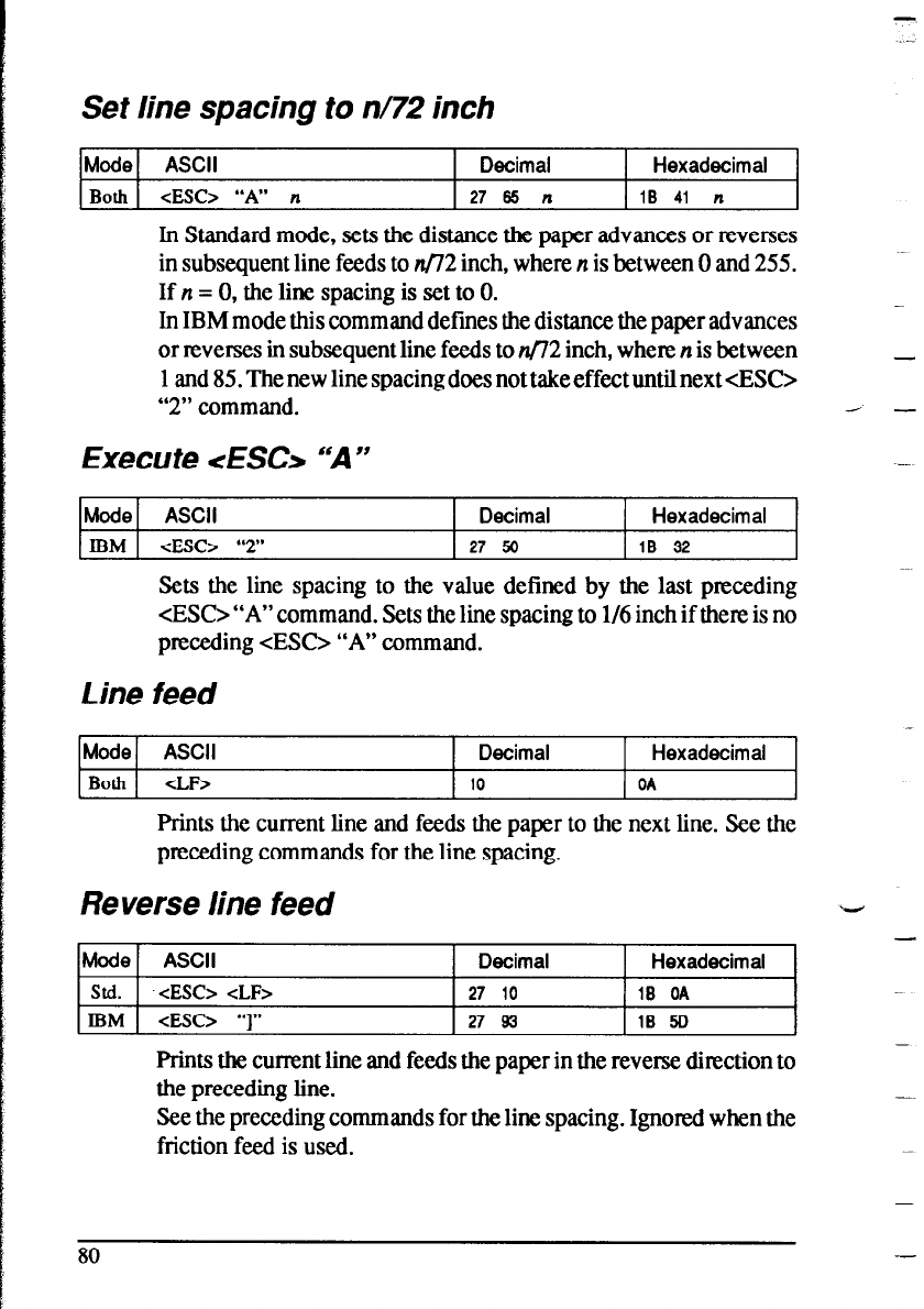 in subsequent line feeds to n/72 inch, where n is between 0 and 255.