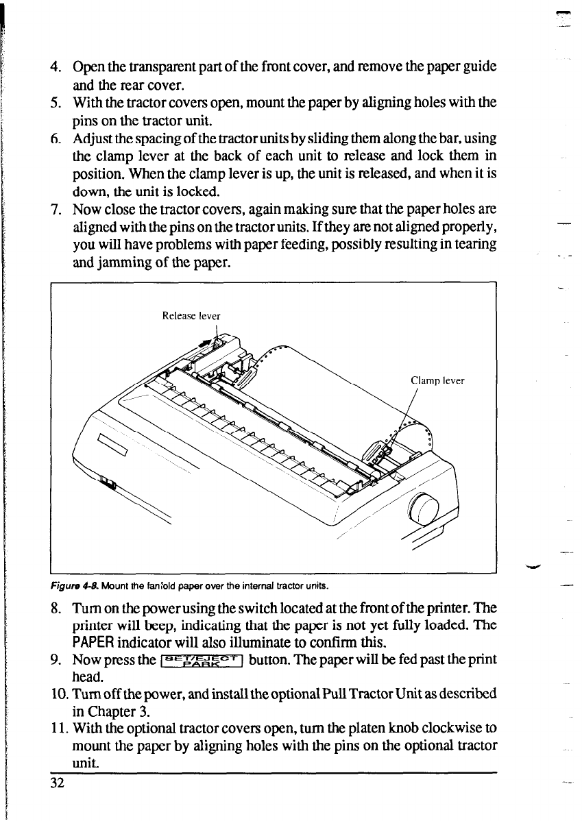 Figure 4-8. Mount the fanfold paper over the internal tractor units.