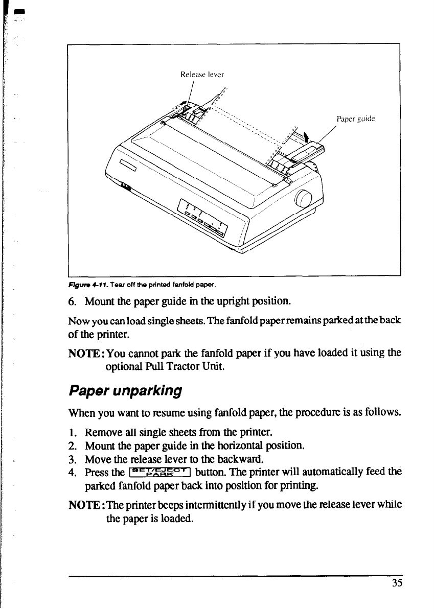 NOTE: You cannot park the fanfold paper if you have loaded it using the