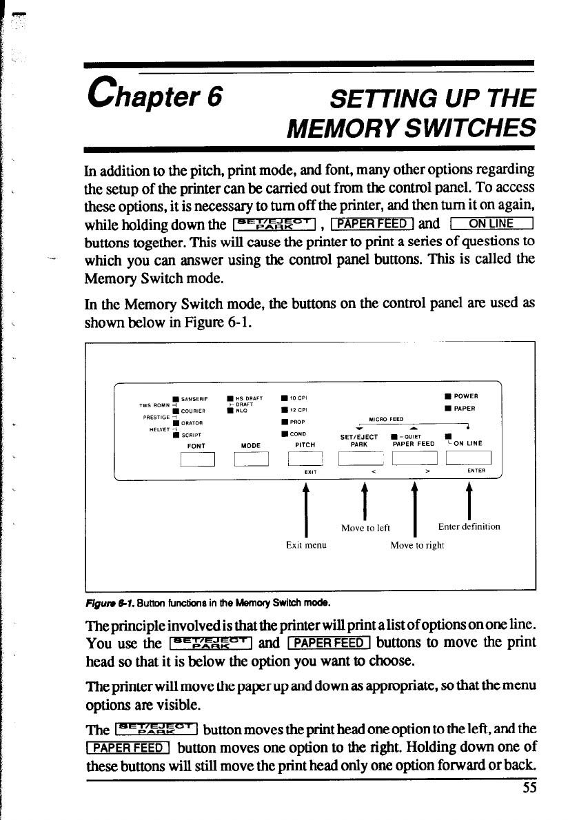 I PAPER FEED 1 button moves one option to the right. Holding down one of