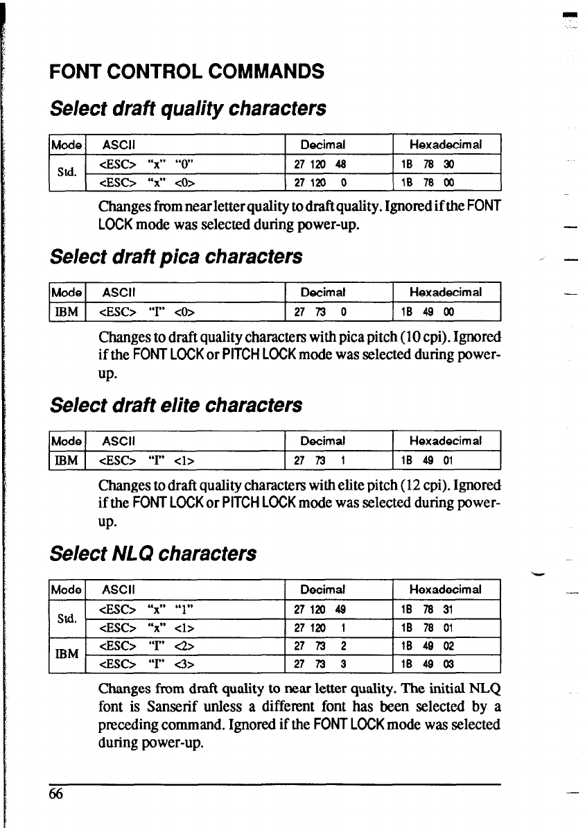 Changes from near letter quality to draft quality. Ignored if the FONT