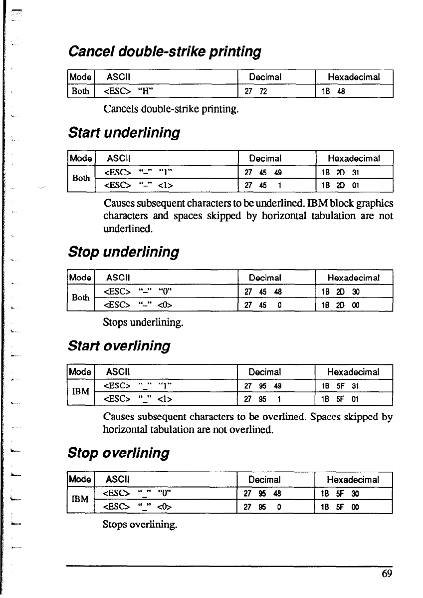 <ESC> ‘I-” <o> 27 45 0 1B 20 00