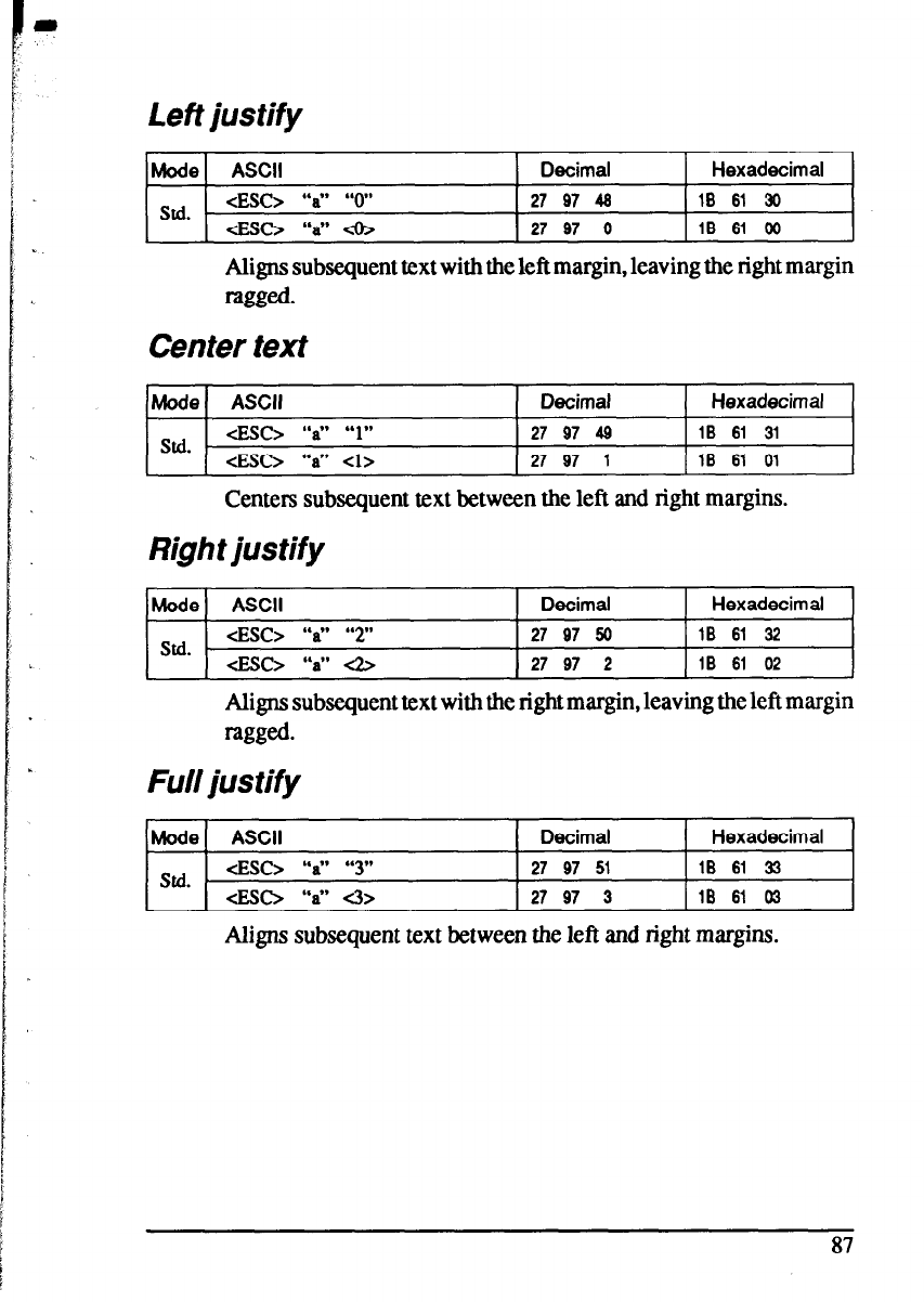 Left justify