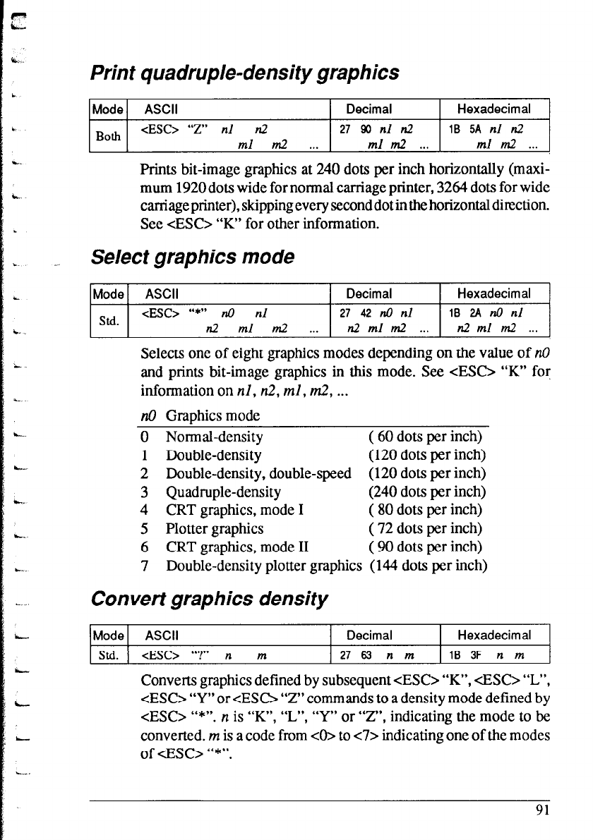 and prints bit-image graphics in this mode. See <ESC> “K” for