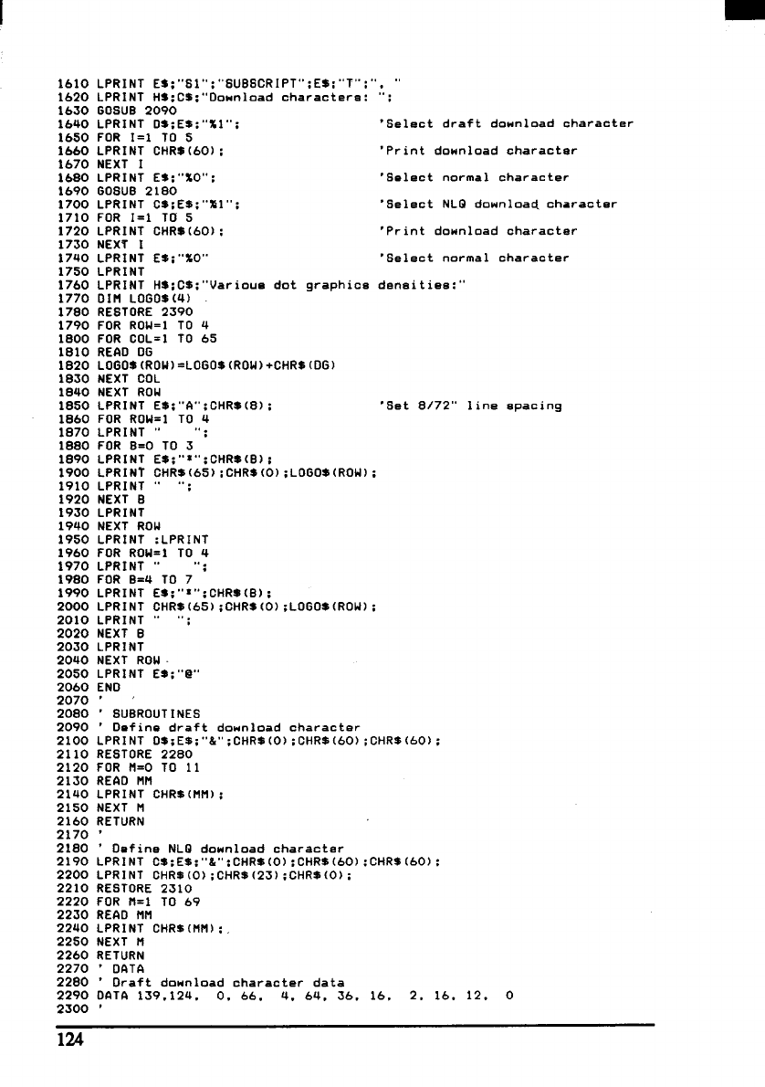 1760 LPRINT HS:C5:’4Uari0ue dot graphics densities:”