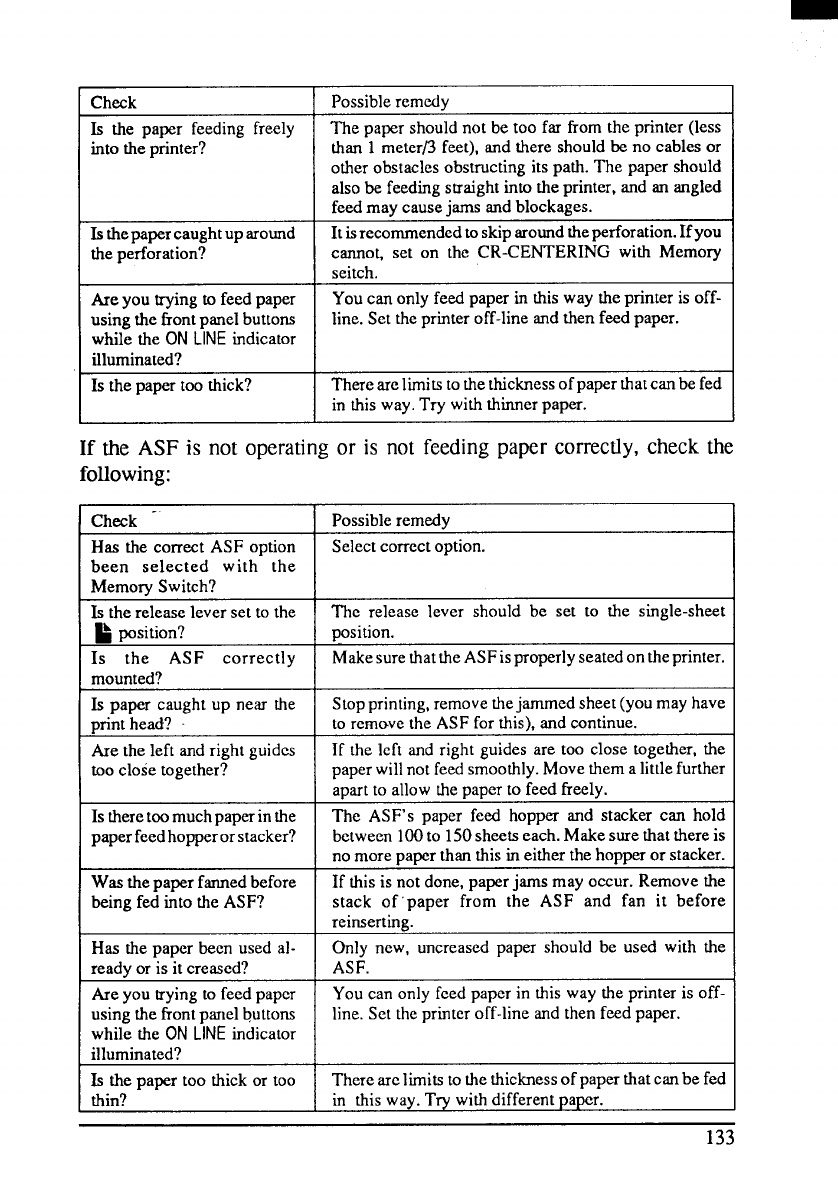 If the ASF is not operatingor is not feedingpaper correctly,check the